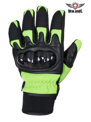 Leather Biker Gloves - Green/Black SKU # GLZ108-GREEN