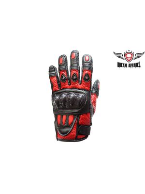 Leather Biker Gloves - Red/Black SKU # GLZ108-RED