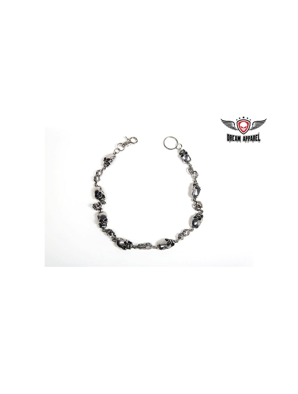 Our biker chain features 8 skulls that hold the chain together and between each skull there are skull hands connecting the skulls. The chain is made to last.