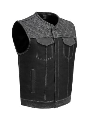 Mens Black Vest Diamond Design White Thread Denim SKU # MV78007-DP-WT-BD