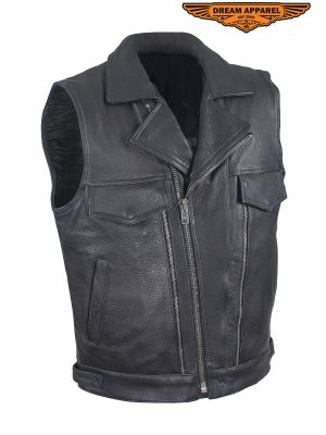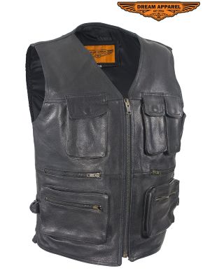Mens Biker Leather Vest With 14 Pockets SKU # MV308-01