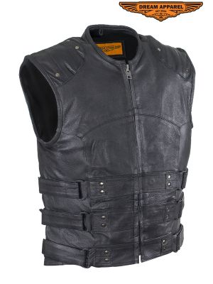 Mens Leather Motorcycle Club Style Vest SKU # MV8001-11