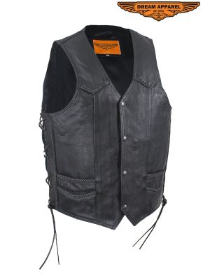 Mens Braided Leather Motorcycle Vest SKU # MV301-RC