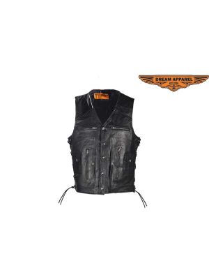 Mens Leather Club Vest With Black Liner SKU # MV8010-11
