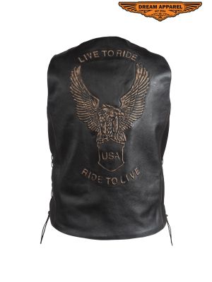 Men's Brown Leather Vest with Live to Ride SKU # MV3090-12