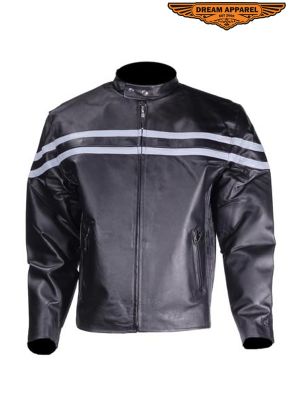 Racer Jacket With Silver Racing Stripes - Mens SKU # MJ779-SIL-RC