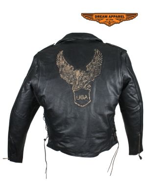Mens Leather Jacket Emboss Eagle SKU # MJ703-09