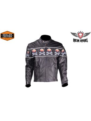 Motorcycle Leather Jacket With Skulls SKU # MJ795-SKULL-SS