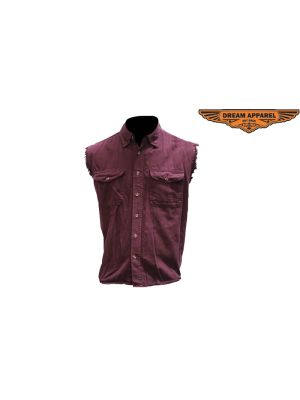 Mens Biker Denim Burgundy Sleeveless SKU # MSL-BURG