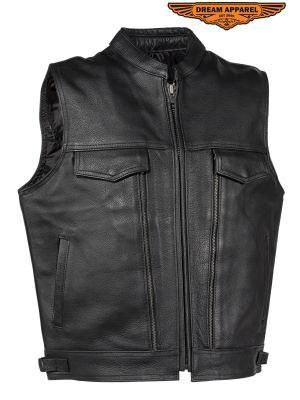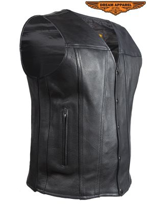 Mens Leather Club Vest With No Collar SKU # MV8008-11