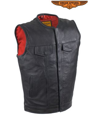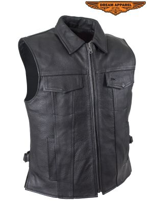Mens Leather Club Vest with Low Collar SKU # MV8001-01