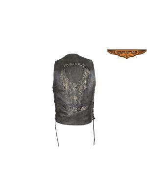 Men's Brown Leather Vest with Live to Ride SKU # MV3090-12