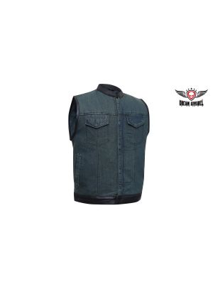 Men's Dark Blue Denim Club Vest with Gun Pockets SKU # MV320-ZP-D.BLU.DENIM