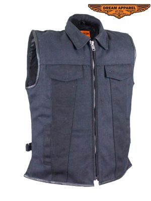 Men's Black Denim Gun Pocket Club Vest SKU # MV8029-ZIP-BD