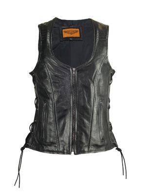 Women's Motorcycle Black Naked Cowhide Leather Vest SKU # N-LV8526-11-BLK