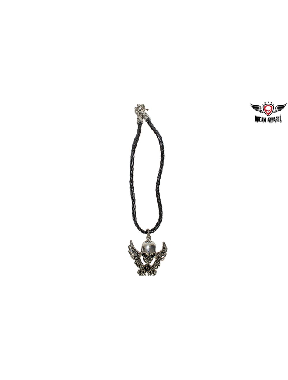 Let your imagination soar in this versatile pewter flying skull with wings and talons on 18" of soft braided leather cord. This pendent looks equally amazing when worn with riding gear as it does with more formal wear and secures by a pewter toggle clasp. Don’t let this unique piece fly away, order yours now.