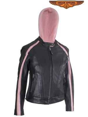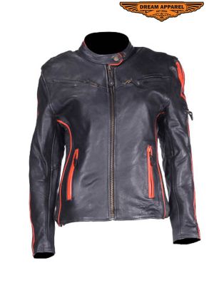 Women Leather Reversible Racer Jkt w. Stripes SKU # LJ273-09-ORG-PINK