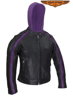 Women's Naked Cowhide Jacket with Purple Jacket SKU # LJ7024-PURP-11