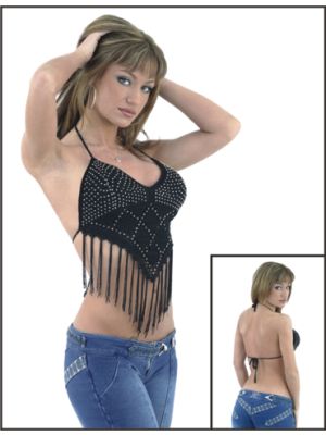 Women Black Halter Top with Studs SKU # SK915-BLK