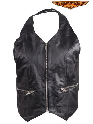 Women Black Halter Top For Biker Chicks SKU # SK906-BLK