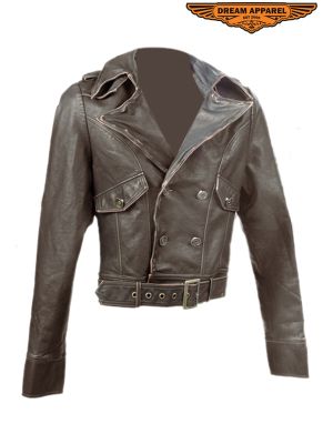 Womens Brown Motorcycle Jacket SKU # LJ217-BROWN