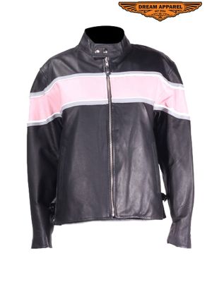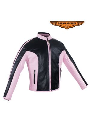 Womens Leather Motorcycle Jacket With Pink SKU # LJ244-11-PINK