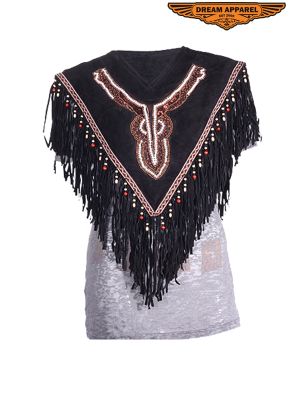 Womens Western Style Leather Vest SKU # LV450-BLK